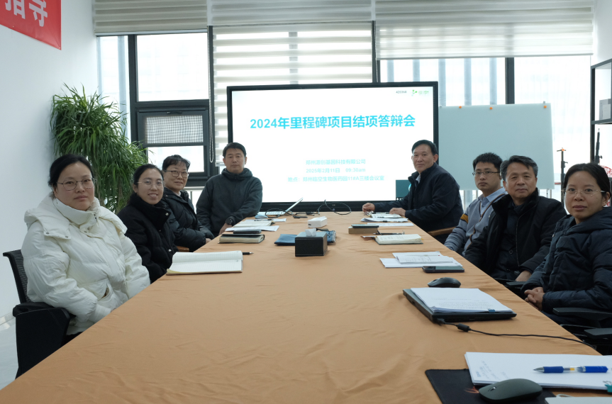 ?2025年2月11日,鄭州源創基因科技有限公司在鄭州臨空生物醫藥園隆重舉辦了2024年里程碑項目結項答辯會。公司董事長趙輝博士、生產研發中心總長王三虎、健康管理中心總長周顯俊、生產研發中心副總長宮璀璀、生產研發中心副總長高曉芳、質控部主管朱玉潔及生產研發中心副總長姚勝杰等管理層悉數出席,共同聽取并審議了涵蓋科研創新、質量管理、產業轉化等領域的多個重點項目的結項匯報。