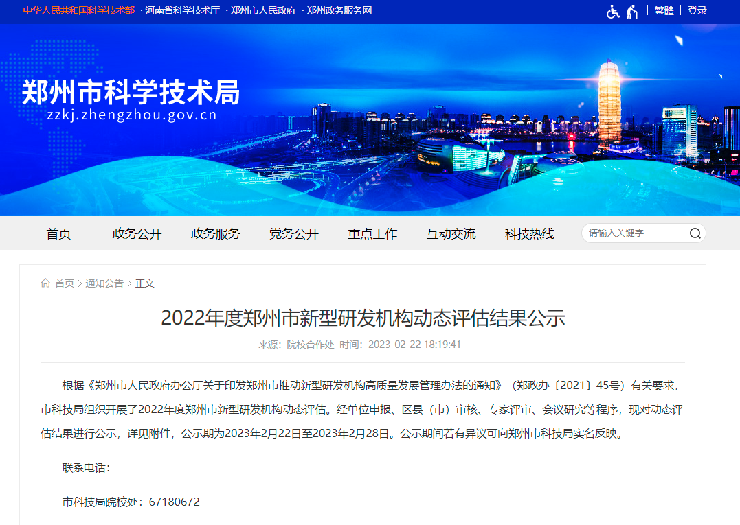 源創基因在“2022年度鄭州市新型研發機構動態評估”中榮獲“優秀”。
