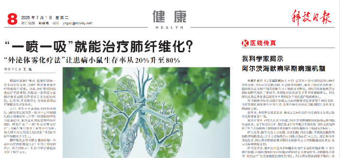 ?7月1日科技日報報道:清華大學基礎醫學院科研團隊與解放軍總醫院第一醫學中心科研團隊聯合海南醫科大學第一附屬醫院呼吸與危重癥科、重慶金鳳實驗室等的科研團隊,研究并開發了一種“外泌體霧化療法”,為肺纖維化提供了新型治療策略。
