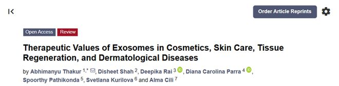 日前,《Cosmetics》雜志刊載了一篇綜述,詳細介紹了外泌體在皮膚美容及皮膚病防治等方面的重要作用。這篇綜述表明,干細胞外泌體對皮膚健康有積極影響;在化妝品方面,干細胞外泌體被用于減少皺紋,改善皮膚質地和水合作用,增強皮膚彈性,以及減少紫外線輻射引起的炎癥和損傷等;此外,外泌體已被用于促進皮膚傷口的組織再生和治療多種皮膚病。