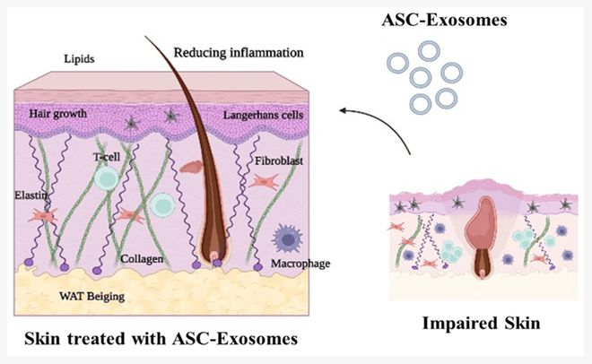 在臨床研究中,外泌體療法已被發(fā)現(xiàn)對去除瘢痕安全有效。研究發(fā)現(xiàn),間充質干細胞衍生的外泌體,包括ADSC-exos,可以調節(jié)成纖維細胞功能和膠原蛋白沉積,以促進無疤痕愈合。因此,ADSC-exos代表了一種改善傷口愈合和預防疤痕的潛在治療方法。