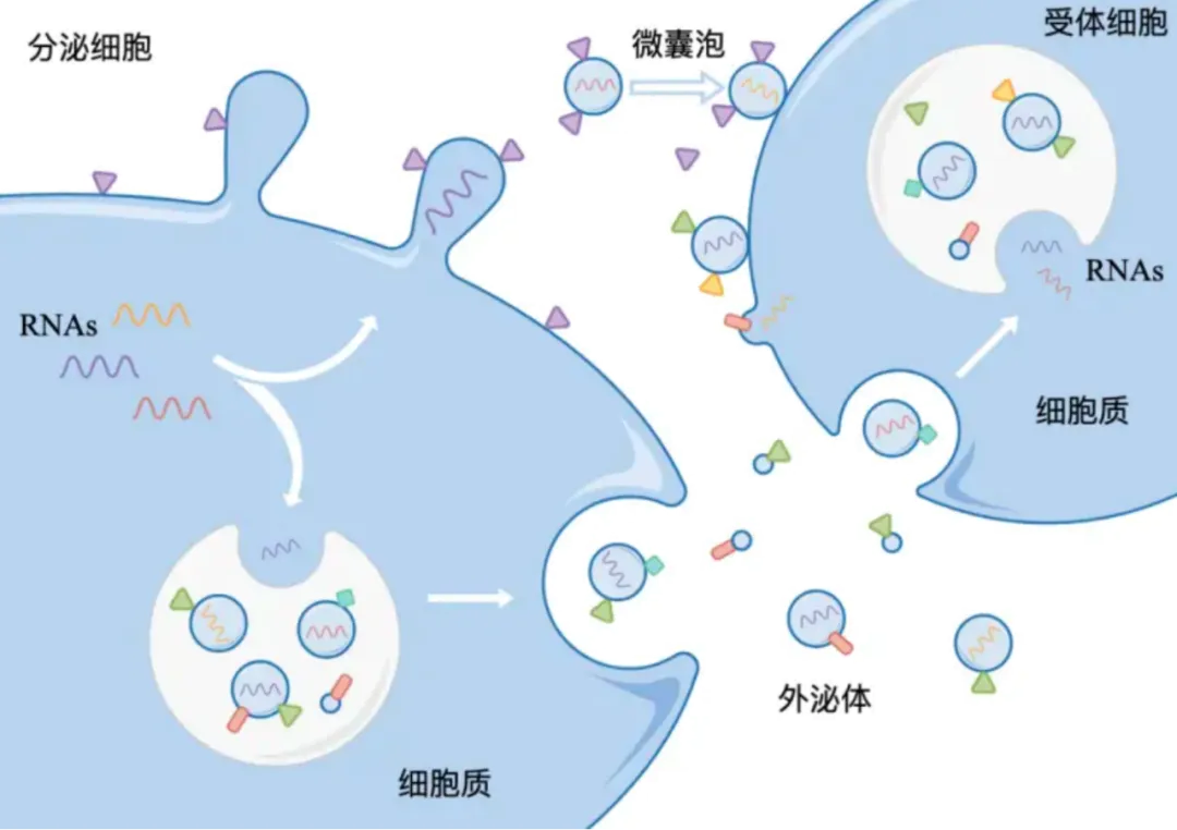 外泌體是由活細胞分泌的微小囊泡,其直徑約為30-150nm,具有典型的脂質雙分子層結構,攜帶和傳遞著十分復雜且重要的信號分子(如mRNA、miRNA、蛋白質、脂質、代謝物等),外泌體在機體的生理過程中發揮重要調控作用。