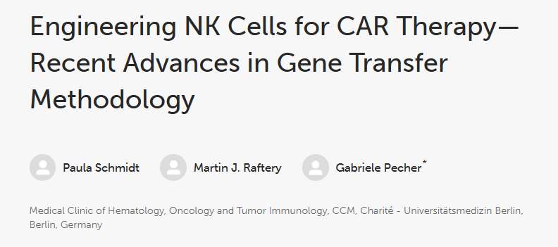 《Front Immunol》期刊上的研究討論了基因轉(zhuǎn)移方法學(xué)在工程化NK細(xì)胞的最新進(jìn)展,特別是在非病毒載體的CAR表達(dá)方面,以及如何通過電穿孔等方法提高NK細(xì)胞的轉(zhuǎn)染效率和CAR表達(dá)的持久性。