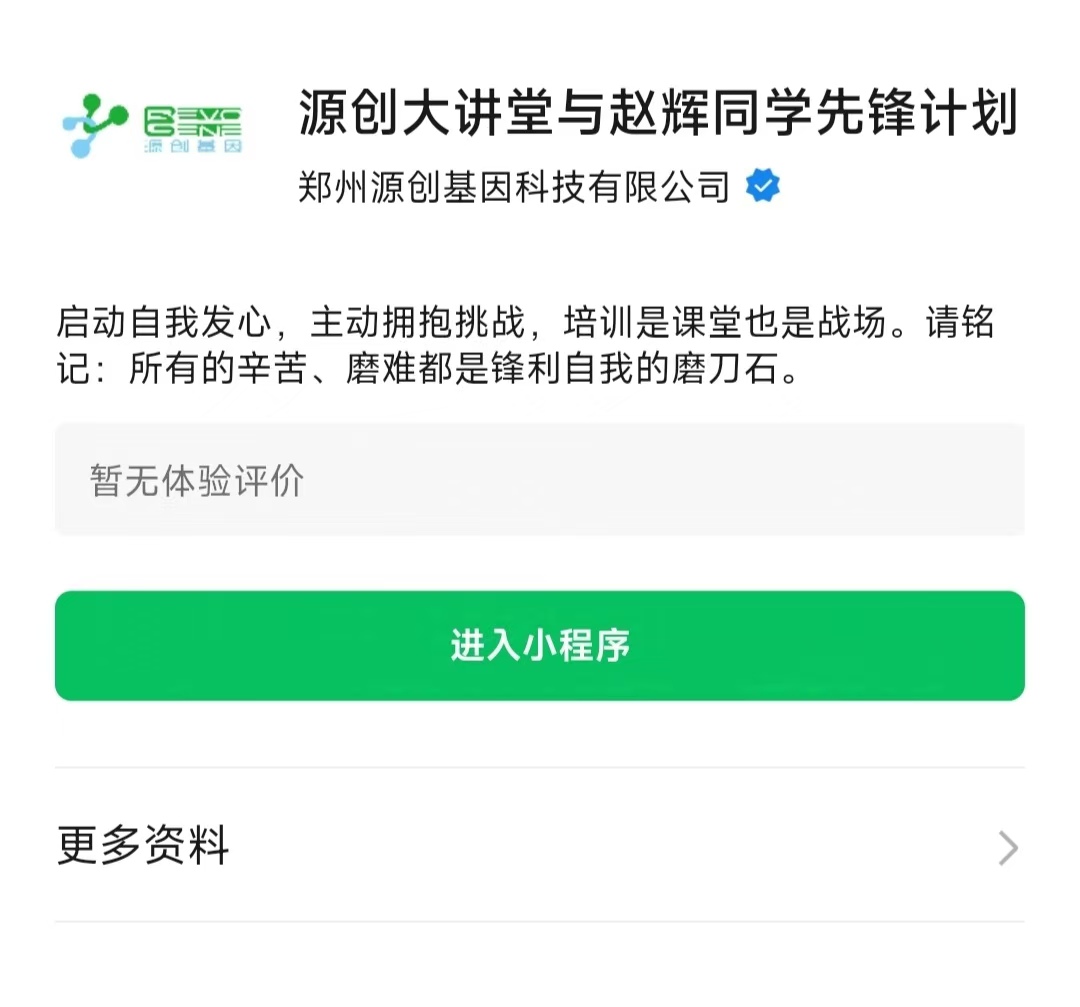 在這個(gè)充滿挑戰(zhàn)與機(jī)遇的時(shí)代,鄭州源創(chuàng)基因科技有限公司始終致力于成為真實(shí)世界細(xì)胞整合應(yīng)用研究的領(lǐng)導(dǎo)者。為了進(jìn)一步提升員工的專業(yè)技能和團(tuán)隊(duì)協(xié)作能力,公司內(nèi)部培訓(xùn)小程序——源創(chuàng)大講堂【與趙輝同學(xué)先鋒計(jì)劃】正式上線!