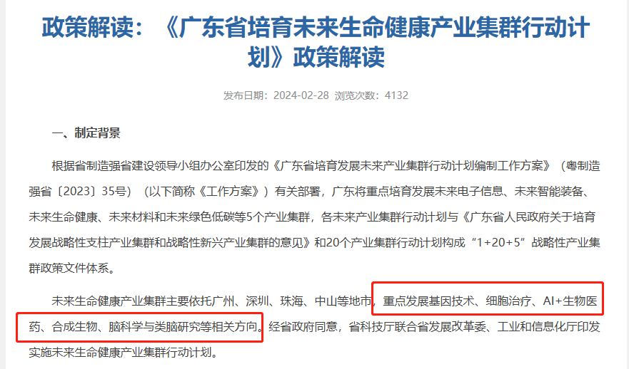 以廣州為例,今年2月,廣東省科技廳等發布《廣東省培育未來生命健康產業集群行動計劃》,圍繞基因技術、細胞治療等5大領域重點發力。4月,廣州南沙發布“生物醫藥九條”,大力支持細胞和基因技術應用,最高1億元的獎勵金額令人矚目。