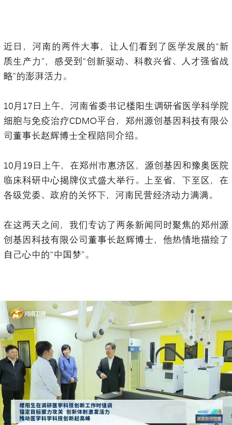 近日,豫奧醫院公眾號專訪了源創基因董事長趙輝博士和他的“生物科學王國”,同時勾畫了源創基因與豫奧醫院深度合作的美好畫卷。