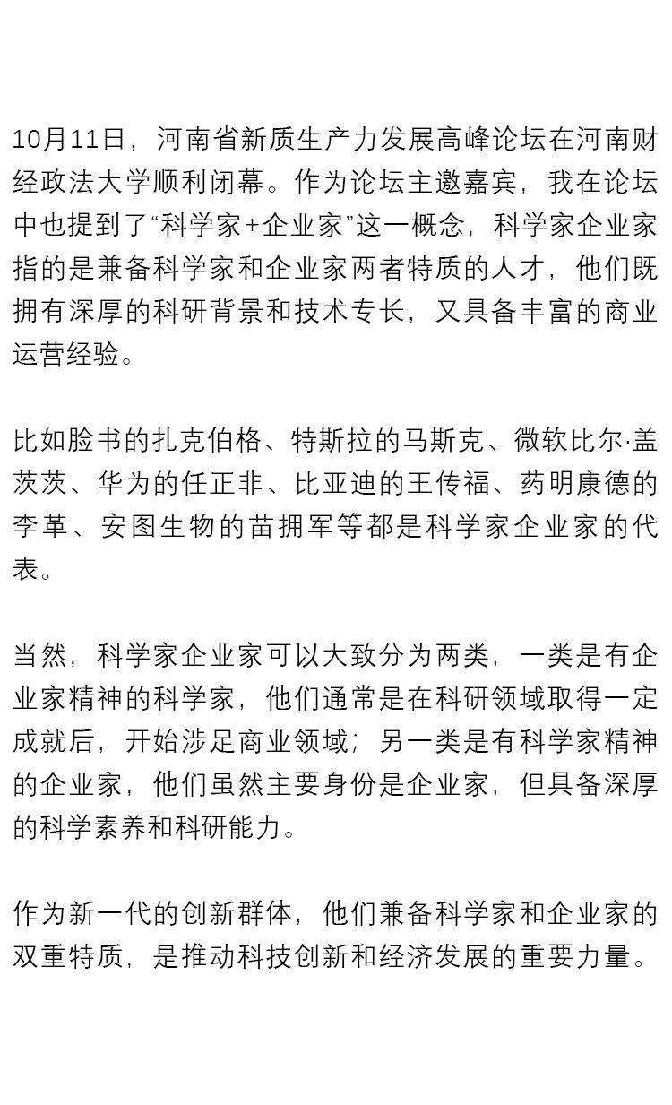 趙輝博士不僅是科學家,更是具備企業家精神的領軍人物,在專訪中,他提出的“科學家+企業家”理念,為新質生產力的發展注入了強勁動力。同時,他對“生化環材”中的生物領域持樂觀態度,認為生命科學潛力巨大,中醫經絡學更是高維度的生物科學。