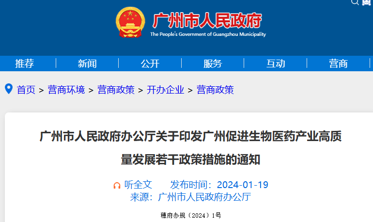 l 《廣州促進生物醫藥產業高質量發展的若干政策措施》