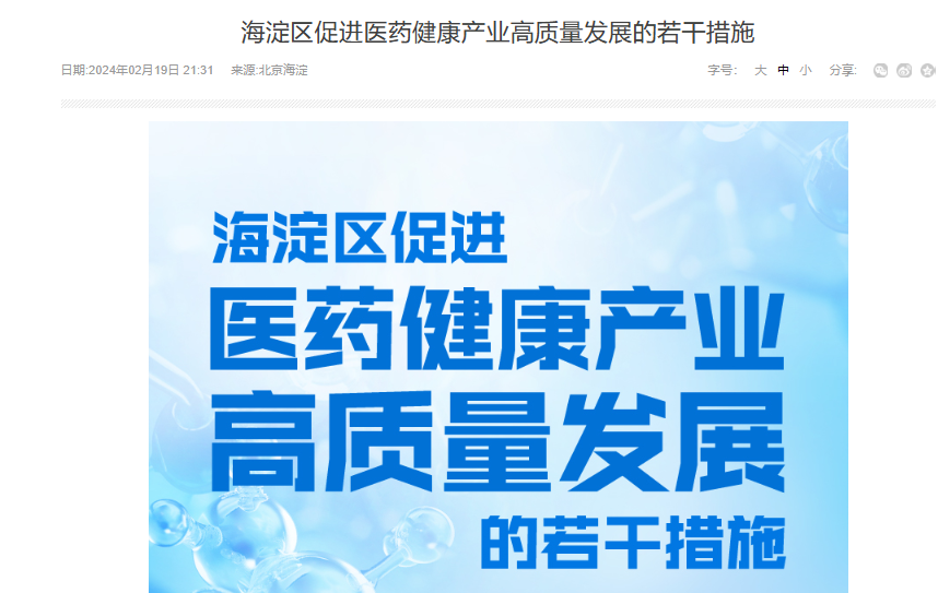 l 《海淀區促進醫藥健康產業高質量發展的若干措施》