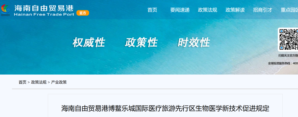 l 《海南自由貿易港博鰲樂城國際醫療旅游先行區生物醫學新技術促進規定(草案)》