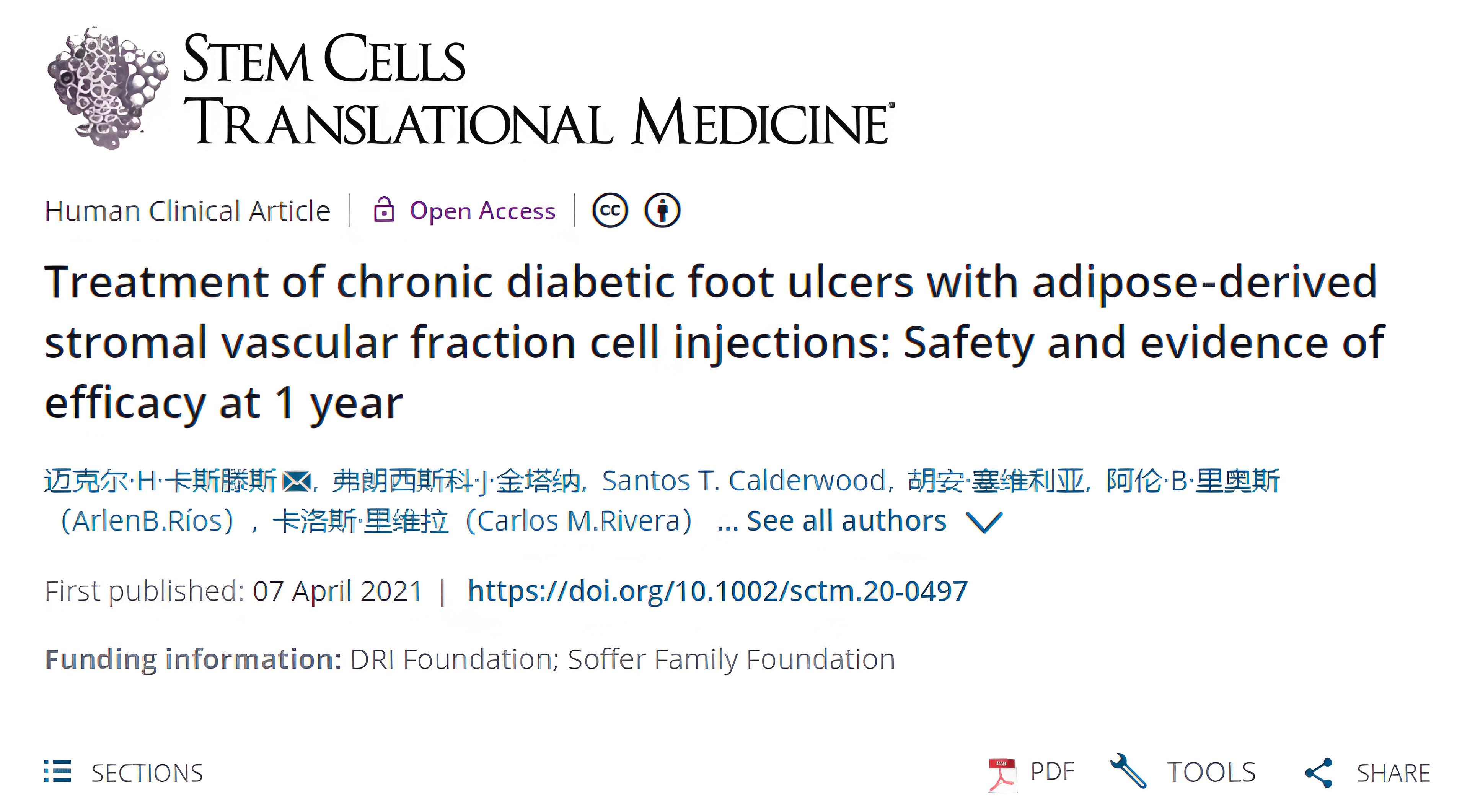 一項研究顯示,來源于脂肪組織的間質血管成分(SVF)細胞,它包含內皮祖細胞(EPC)和間充質干細胞(MSC),兩者均具有促進血管生成的活性。在對63例慢性糖尿病足患者治療后,傷口愈合情況顯著改善,80%患者傷口愈合率達到了100%。這為糖尿病足患者帶來希望。