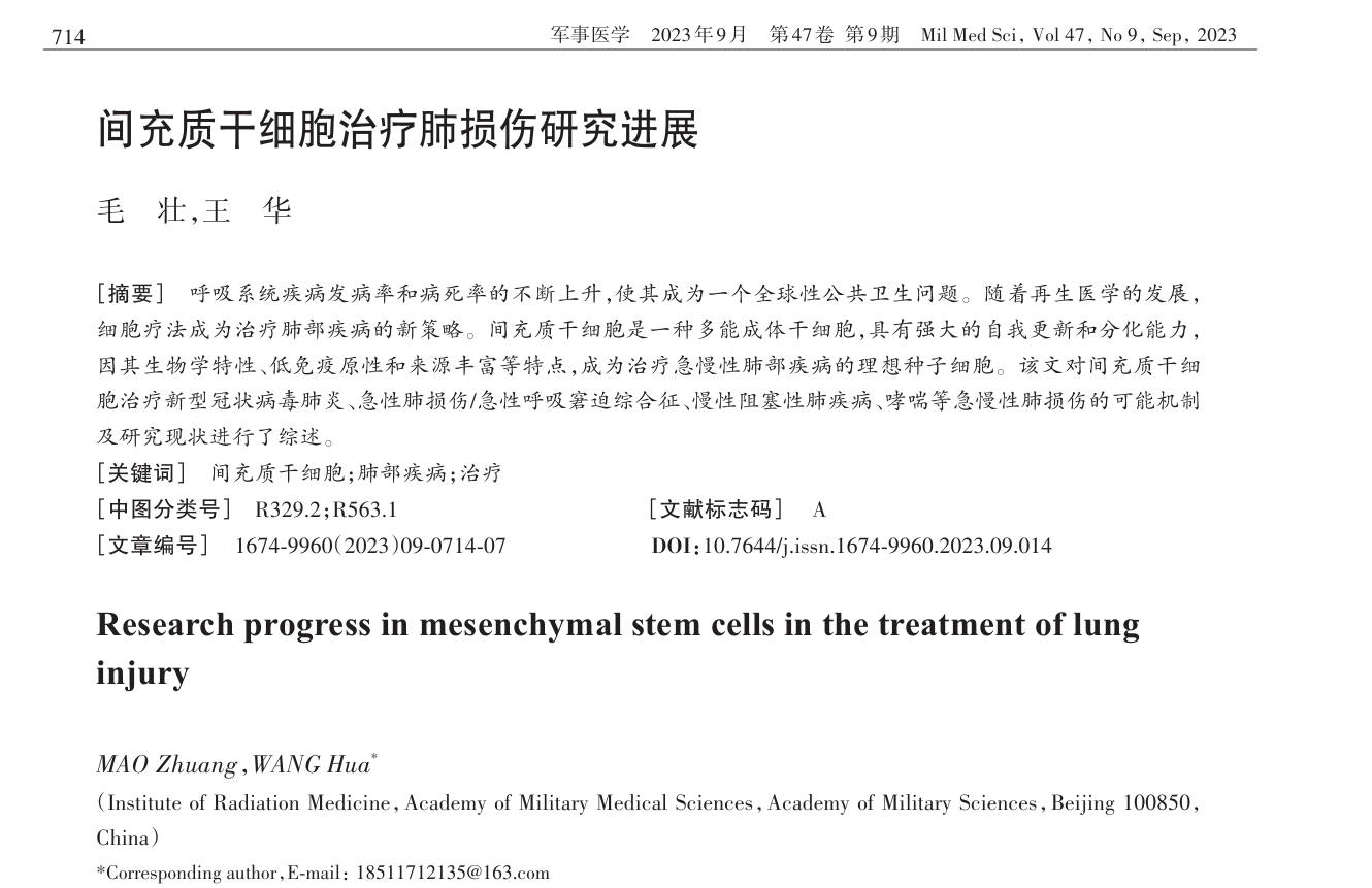 [2]萬雪婷, 楊紅, 王珺, 等. 間充質(zhì)干細(xì)胞治療慢性阻塞性肺疾病的研究現(xiàn)狀 [J] . 中國醫(yī)師雜志, 2024, 26(1) : 156-160. DOI: 10.3760/cma.j.cn431274-20230328-00415.