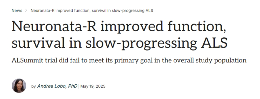 2025年5月19日,韓國Corestemchemon公司宣布其研發(fā)的干細(xì)胞療法 Neuronata-R(lenzumestrocel)在III期臨床試驗(yàn)中取得關(guān)鍵進(jìn)展。
