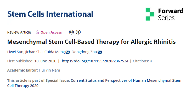 2020年,一項(xiàng)間充質(zhì)干細(xì)胞治療鼻炎的應(yīng)用研究發(fā)表在《Stem Cells International》上,介紹了干細(xì)胞免疫調(diào)節(jié)作用的機(jī)制及基于干細(xì)胞的鼻炎臨床治療方法應(yīng)用,研究表明,干細(xì)胞可能會(huì)成為未來(lái)鼻炎治療最有希望的策略之一。