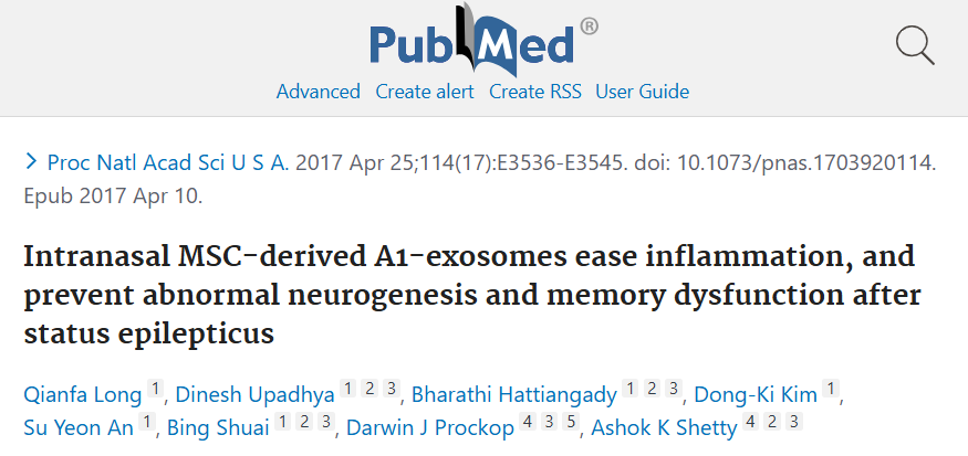 國際權威期刊近年發表了多項外泌體治療中樞神經系統疾病的突破性研究: