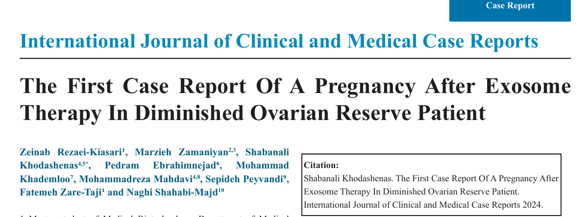Shabanali Khodashenas. The First Case Report Of A Pregnancy After Exosome Therapy In Diminished Ovarian Reserve Patient.International Journal of Clinical and Medical Case Reports 2024.