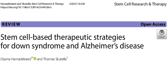 Hamadelseed, O., Skutella, T. Stem cell-based therapeutic strategies for down syndrome and Alzheimer’s disease. Stem Cell Res Ther 16, 420 (2025)