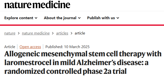 值得一提的是,2025年3月發(fā)表于《自然-醫(yī)學(xué)》(Nature Medicine)期刊的Lomecel-B治療阿爾茨海默病Ⅱa期臨床研究結(jié)果顯示,干細(xì)胞輸注使輕度AD患者的腦萎縮速率顯著減緩達(dá)62%,并延緩了認(rèn)知功能的下降。