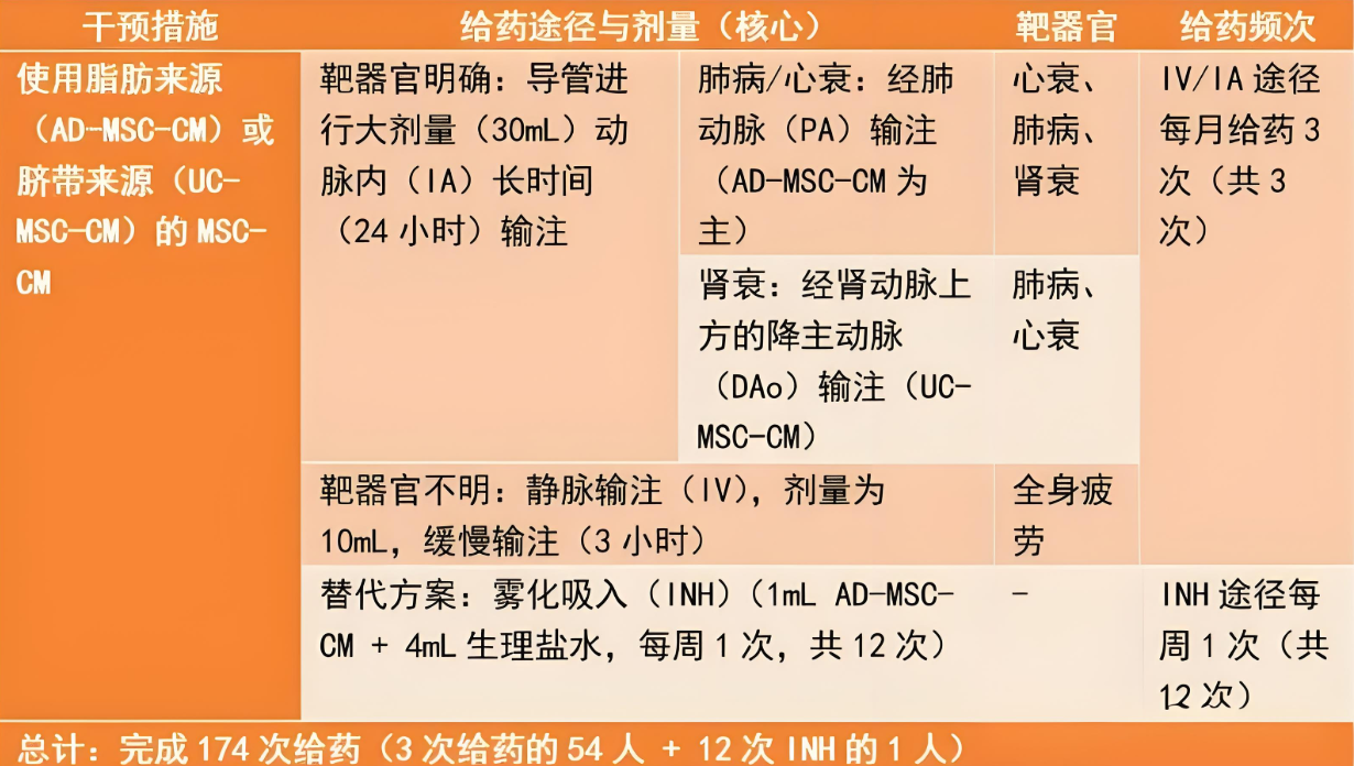 所有患者均接受了嚴格質控的人源間充質干細胞條件培養基(含外泌體)治療。根據病情需要,通過三種途徑給藥:靜脈注射、動脈注射、吸入給藥。