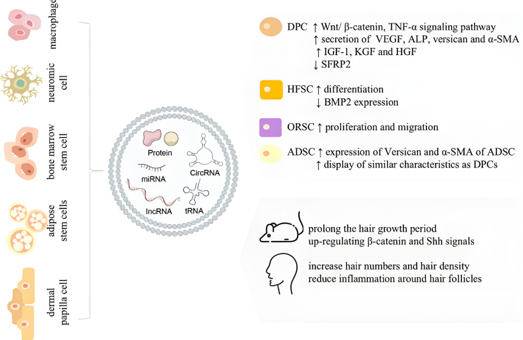 近年來(lái),脫發(fā)問(wèn)題受到廣泛關(guān)注。鑒于脫發(fā)的高患病率及其對(duì)人體身心健康的顯著影響,開(kāi)發(fā)有效的治療方法顯得尤為迫切。隨著外泌體在多個(gè)醫(yī)學(xué)領(lǐng)域均展現(xiàn)出強(qiáng)大的應(yīng)用潛力,利用外泌體改善脫發(fā)自然成為了研究的一大熱點(diǎn)。