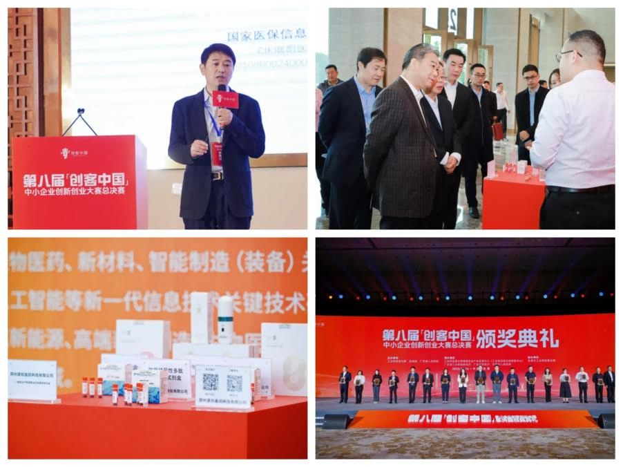(圖一為源創基因董事長趙輝博士在“創客中國”全國總決賽現場演講;圖二為源創基因工作人員在“創客中國”展演現場向參會者講解該產品技術;圖三為“創客中國”源創基因產品展臺現場;圖四為“創客中國”總決賽頒獎典禮現場)