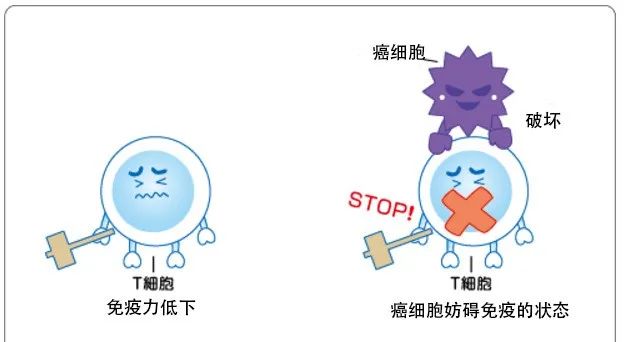 因此,人體里具備一個讓免疫力不超過一定界限的“檢查點”來抑制其功能,這是與生俱來的,保持免疫平衡的系統(tǒng)。在免疫細胞正常作業(yè)的狀態(tài)下,當(dāng)發(fā)現(xiàn)異物時,一種被稱為T細胞的免疫細胞會主動攻擊并排除癌細胞。