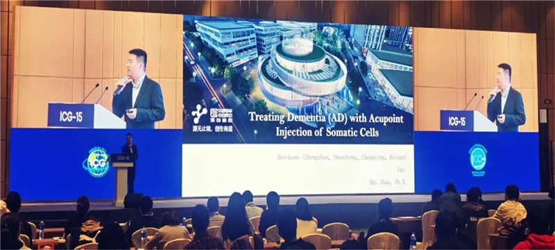 10月28日上午,鄭州源創吉因實業有限公司董事長趙輝博士受邀參加第十五屆國際基因組學大會,并帶來了一場題為《體細胞穴位注射治療老年癡呆的創新性研究》(Treating Dementia(AD) with Acupoint Injection of Somatic Cells)的精彩報告。隨著我國老齡化,未來每三個人會有一個老年癡呆患者,給社會和家庭帶來上千億損失。由于病因未明,雖然投入大量資源研究,迄今全球沒有針對病因的有效藥物。現有的抗老年癡呆藥物都是對癥緩解,并不能有效提升患者的認知能力(MMSE評分)。趙輝博士創造性將體細胞治療和中醫經絡系統相結合,提出體細胞穴位注射治療老年癡呆研究項目。前期實驗表明經過6次體細胞穴位注射治療后,可以有效提高患者認知力,其MMSE評分平均提高10分左右,同時也顯著提升日常生活評分指數(ADL)。此項治療技術不僅沒有藥物治療的常見副作用,更是迄今為止全球老年癡呆研究中首個有效改善患者認知能力的研究。開創了治療神經退行性病變的全新領域,將為防治老年癡呆做出卓越貢獻。