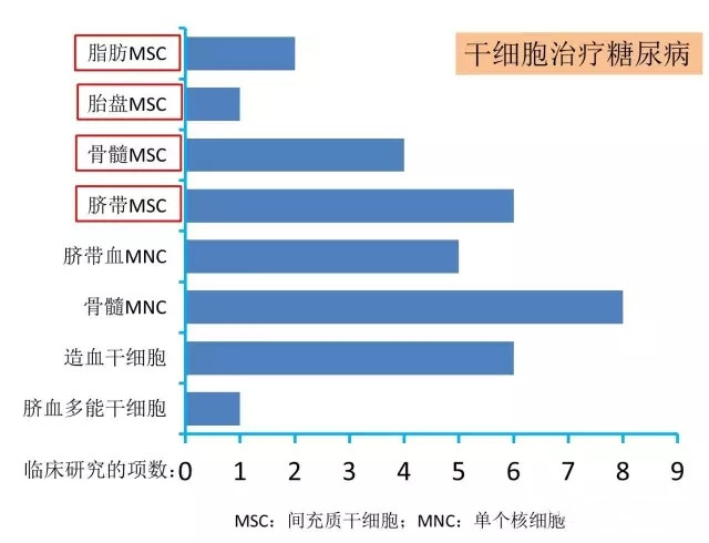 根據(jù)以上四組臨床研究得出,MSC治療2型糖尿病患者后,患者胰島素的使用量下降比較明顯,而且效果能維持?jǐn)?shù)月甚至一年半。并且MSC應(yīng)用于糖尿病患者在一定程度上能保護(hù)胰島β細(xì)胞的功能,尤其是2型糖尿病,提高機(jī)體對胰島素的敏感性。